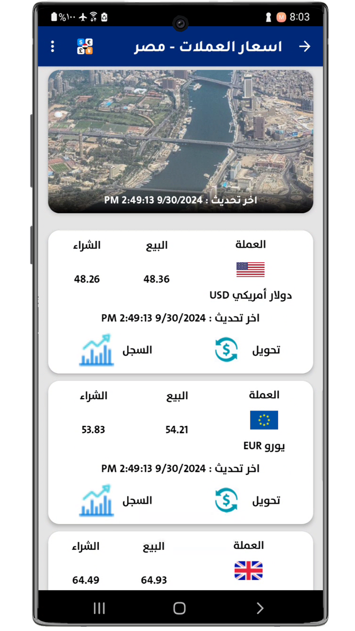 يوفر التطبيق معلومات محدثة حول أسعار العملات في مصر ، مع عرض أسعار البيع والشراء بشكل دقيق. يتضمن التطبيق أسعار العملات العالمية مقابل الدولار الأمريكي والريال السعودي وغيرها من العملات، مع تحديثات يومية مستمرة لتمكين المستخدمين من متابعة التغيرات في أسعار الصرف بسهولة وسرعة.